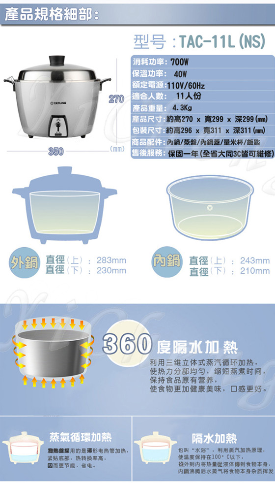 大同-11人份星河銀(不鏽鋼配件)電鍋(TAC-11L-NS) 討論,推薦,開箱,CP值,熱賣,團購,便宜,優惠,介限時活動優惠紹,排行,精選,特價,周年慶,體驗,限時